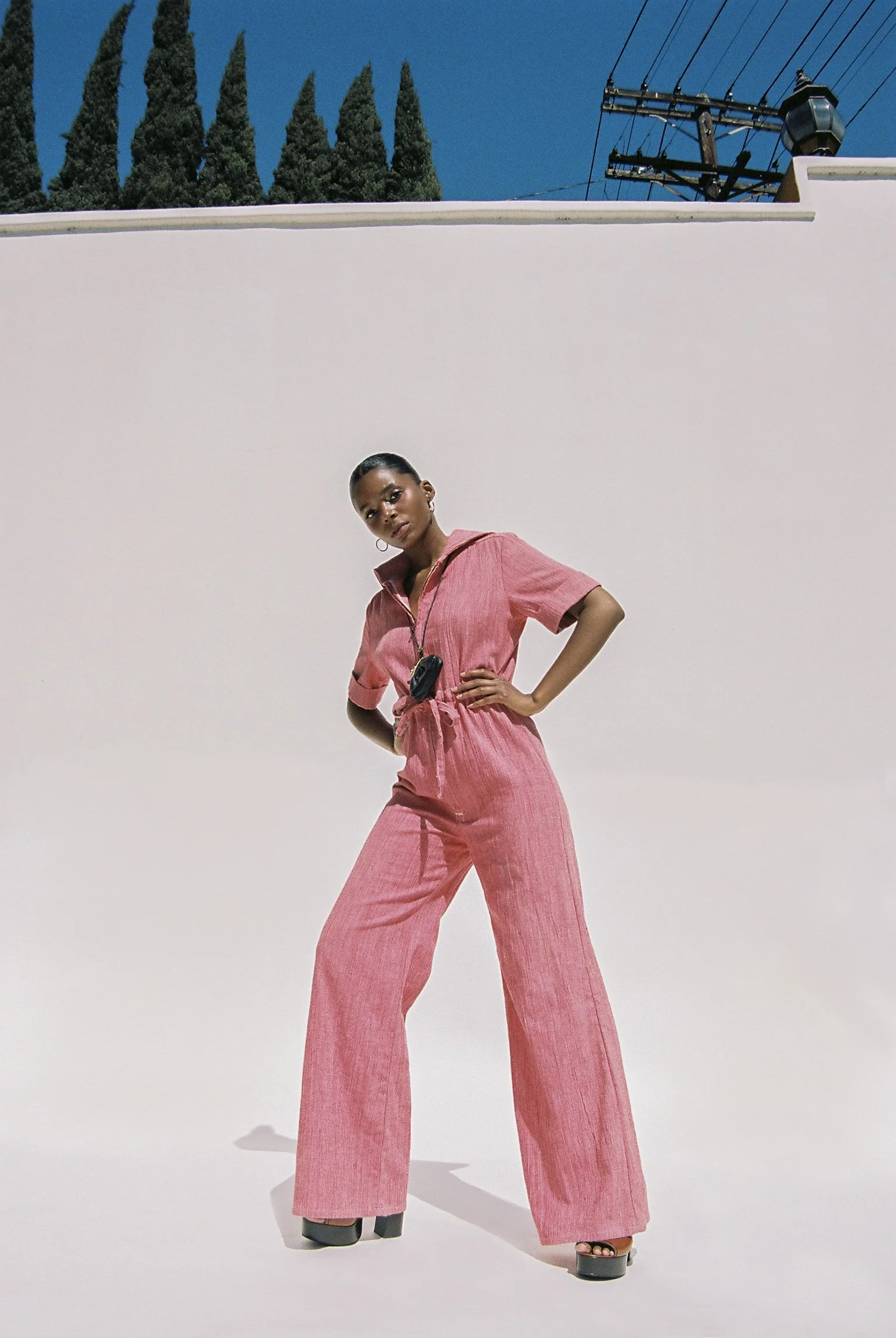 1970s cotton twill romper. Zips in front and has a drawstring tie in the front! Sexy and adorable one-piece. Fine red and white stripes with a sailor collar.
